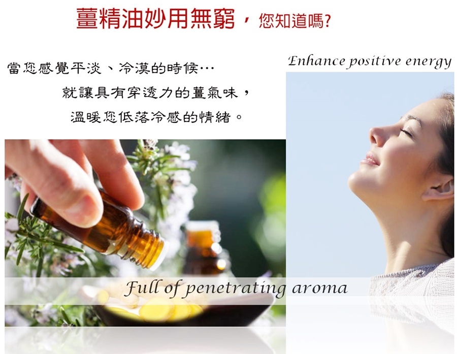 具有甜、辣、木質和溫暖的香味,精神疲倦時就讓薑的香氣讓您充滿力